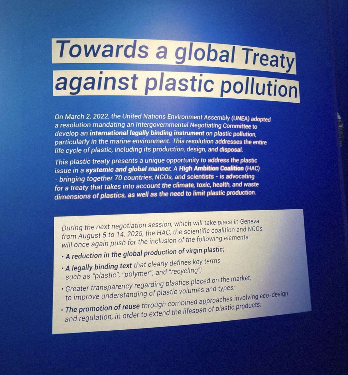 The third United Nations Ocean Conference (UNOC3), held in Nice in June 2025, brought together 15,000+ participants including heads of state, scientists, NGOs, and business delegates to accelerate international action on ocean sustainability. Plastic pollution was high on UNOC3’s agenda. The conference concluded with the Nice Ocean Action Plan, a political declaration in which over 170 countries called for urgent measures to protect our ocean. Critically, UNOC3 became a platform to advance a Global Plastics Treaty. Representatives from more than 95 countries (including major plastic-producing and consuming nations) issued the “Nice Call for an Ambitious Plastics Treaty,” a joint declaration outlining what an actionable agreement should include: